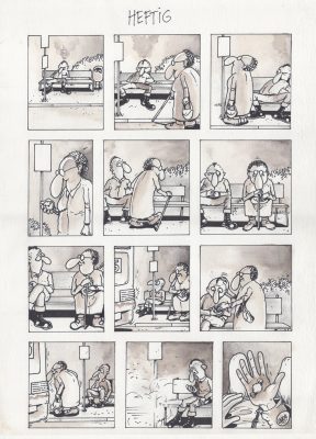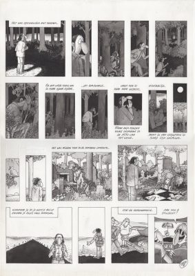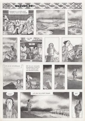 uit de tijd dat er nog geen computers en smartphones waren. Wat meteen opvalt, is de mens in het werk. Noeste handenarbeid: 3 verschillende diktes Rotring pen. Inkleuren met aquarel. Geen scanners of Photoshop of digitale media te bekennen. Urenlang, kilometers maken in een oude boerderij in de uiterwaarden van Beuningen. En ik was bikkelhard: no typex allowed! Maakte ik na een dag werk onderaan de pagina een foutje, dan ging het zo de prullenbak in. De pagina moest maagdelijk gelukt zijn.